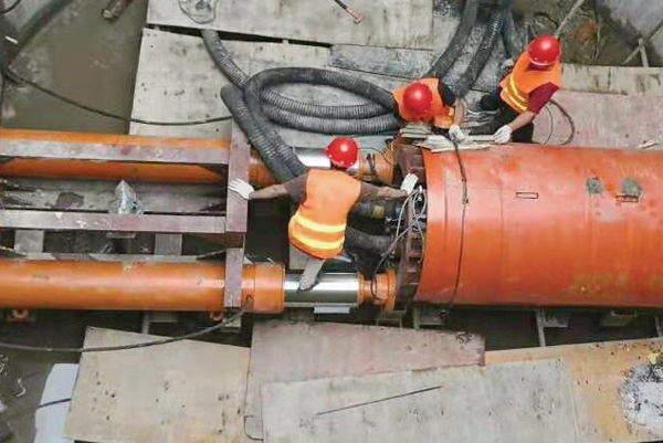 湖南頂管機千斤頂施工現場